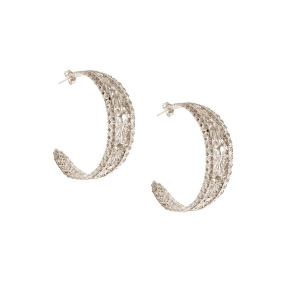 Adorn your style with the Royale hoops, crafted with intricate filigree for timeless elegance and remarkable beauty. Perfect for special occasions, these gleaming hoops make a bold statement through their exquisite and historical design.